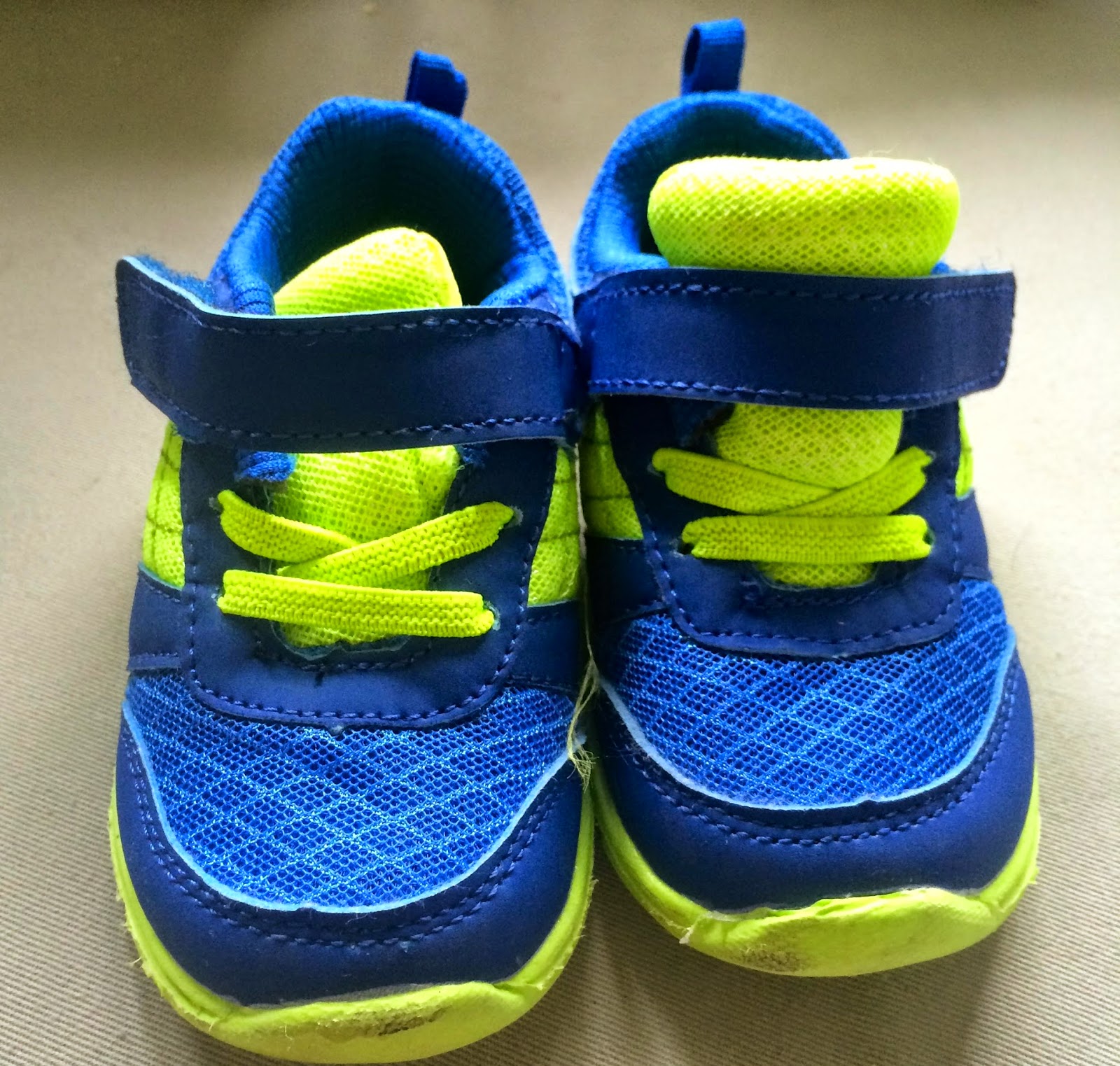 Вчера я купила для своей дочери обувь. Это ее первая пара. Ей почти два года. Кроссовки ярко-голубого и зеленого цвета. Она любит пинать мячики на заднем дворе, и поэтому мы записали ее в дошкольный класс по футболу. И в последнюю минуту я увидела, что в правилах сказано, что надо носить соответствующую обувь. Поэтому я купила это.
