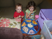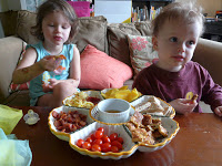 Вместо того, чтобы есть за большим высоким столом, мы едим за кофейным столиком. Дети могут легко до него дотянуться, они могут приходить и уходить, когда им заблагорассудится. Мы ставим еду два-три раза в день, и еще иногда выставляем перекусы. Как я уже писала в предыдущем посте о еде, мои дети могут есть что угодно и когда угодно. Иногда они едят только мороженное, или фруктовое мороженное или чипсы, пока я не перестаю выставлять тарелку с этими лакомствами. Часто, как только появлялась тарелка, они, прежде всего, хватали эскимо.