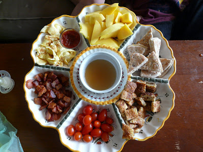 Обычно, у нас дома не готовят традиционные обеды. Чаще всего, я просто ставлю детям еду, не устанавливая время приема пищи. Вместо этого я, вдохновленная идеей Сандры Додд, я ставлю тарелки, разделенные на отдельные секции, и раскладываю по разным секциям разную еду. Я режу овощи, фрукты, мясо, хлеб, сыр, и кладу все это в отдельные секции. Я даже раскладываю так чипсы, конфеты и печенье.