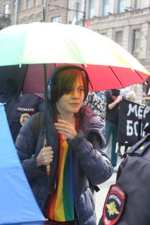 Я говорю о том, что зонт не был цвета ЛГБТ-символики.